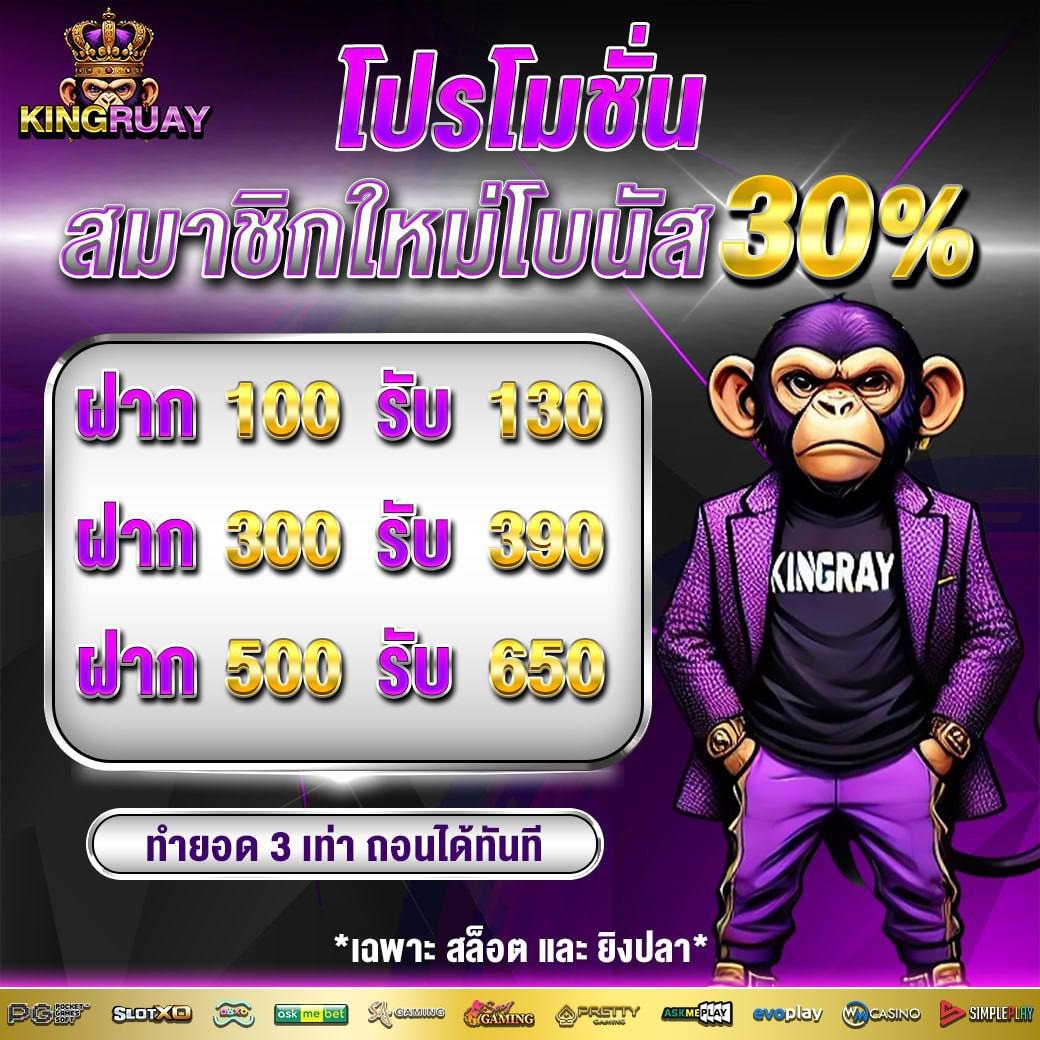 เมื่อคุณสมัครสมาชิกใหม่กับ kingruay และทำการฝากเงินครั้งแรก ระบบจะเพิ่มยอดเครดิตให้คุณทันทีเท่ากับจำนวนเงินที่คุณฝาก ยกตัวอย่างเช่น ถ้าคุณฝากเงิน 1,000 บาท คุณจะได้รับโบนัสอีก 1,000 บาท รวมเป็นเงินที่สามารถเล่นได้ถึง 2,000 บาทเลยทีเดียว!